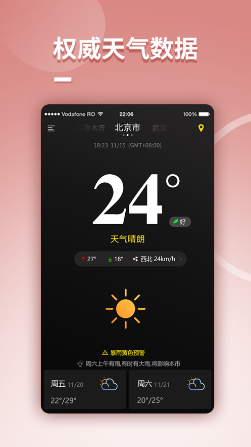 提醒您天气变化,以帮助您更好地计划行程,恶劣的天气第一时间为用户推送。