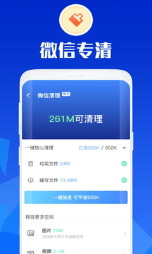 2、不管是电池优化还是内存清理,还有聊天软件的专清功能,在手机上就可以清理各种聊天软件的文件。