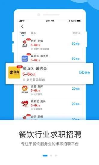 优质的餐饮业招聘求职的软件,超多的求职信息,贴心的在线沟通,用户可以轻松的找到理想的工作!