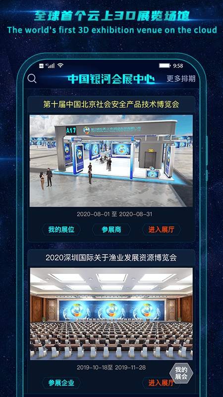 中国银行会展是一款提供线上会展服务的app,用户可以在上面查询到会展上最新最全面的内容,3D真实展示各个地方的会展,软件内还有会很多的银河资源和广大用户互相分享,帮助到用户能更好的在线参加展会。