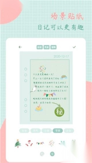 4、各种背景、字体、贴纸、模板等。,来丰富用户的日记体验;