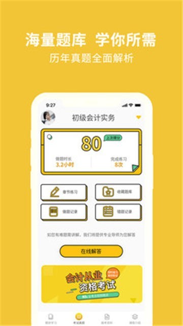 智能题库,章节练习、考试真题、高频考题。