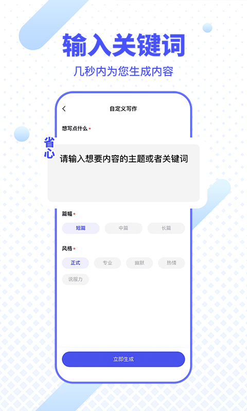只要输入您需要的文章主题,选择文章类型,软件就会自动生成符合要求的文章,让您轻松省时地完成写作任务。