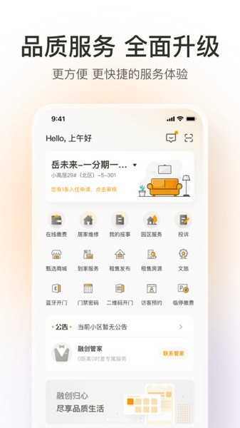 融创归心是一款由融创物业服务集团有限公司发的服务App,主要提供社区生活服务。这个App通过融合互联网、物联网、大数据和人工智能等先进技术,为居民提供高效、便捷、智能化的生活服务。它为居民提供了物业缴费、报修、社区活动、社区服务等一系列功能,实现居民与物业管理的无缝连接。