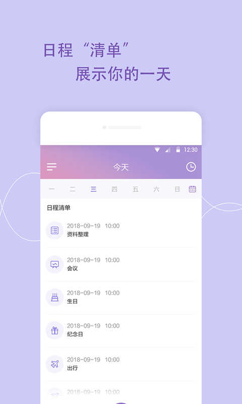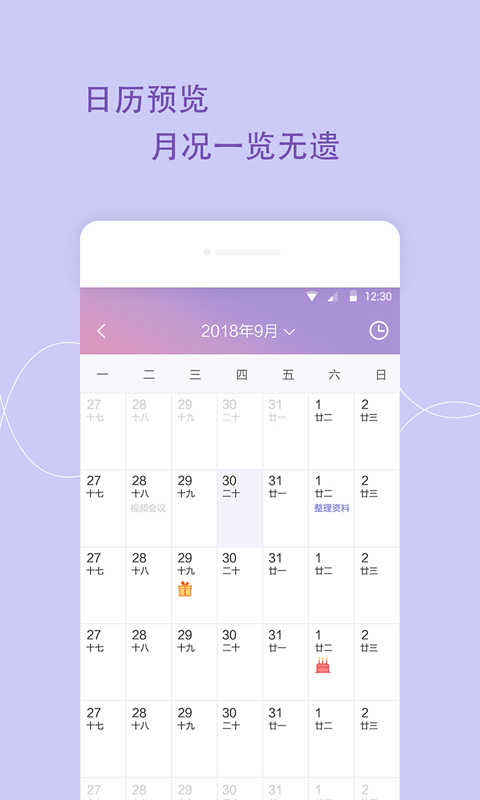 多种视图:日历、列表、日程分布图等视图,方便用户按不同方式查看日程;