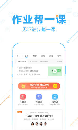 作业帮2023最新版是由广州小蓝帮网络科技有限公司推出的一款学习辅导软件,为学前、小学、初中、高中各个学习阶段的同学提供了海量教育辅导资源,只要有用户遇到了不会做的题目就可以拍照搜题,内置3亿大数据题库,得力于里面的超大题库可以帮助用户快速找到相关的答案,还有相关的解题思路为你献上,再也不用担心不会做题了。即使用户在拍照搜题的过程中找不到答案,甚至还可以请求老师在线解题,专业的教师为你在线解答疑惑,解题思路、学习技巧全都有,让你享受优质的教育资源。此外,作业帮里面有很多好用的学习功能,包括作文搜索、单词查询、同步练习、计算器等等,还拥有众多专业网课可以报名学习,哪个知识不会立刻报名学习,有需要的朋友赶紧来下载吧。