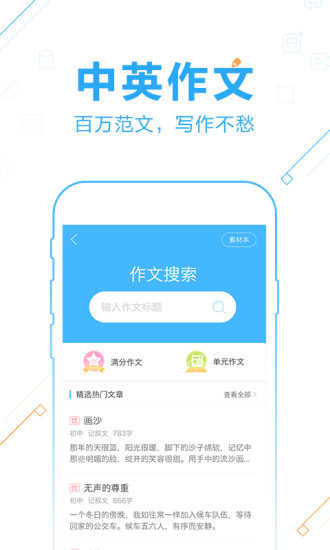 6.作文搜索:英语作文不会写?中文作文还在凑字?作业帮你搜一搜,800万篇优秀范文,轻松打开思路,帮你在中考、高考中快速提分!