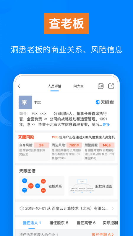 --查企业、查老板、查关系,查征信、查信用、找客户、谈合作、做调研,就上天眼查