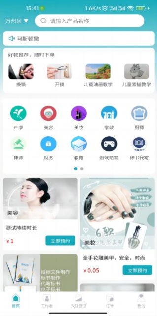 用户可以轻松在线下单,享受专业资质认证的服务人员。