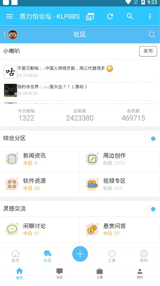 在“+”界面,可以发帖、签到或做任务等。,并发布新闻。