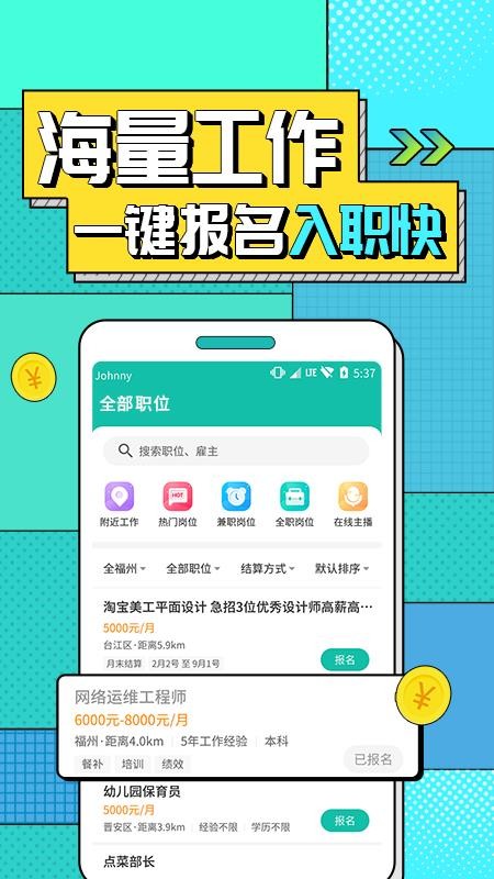 3、申请工作时,您不必担心问题,可以轻松快捷地找到工作。