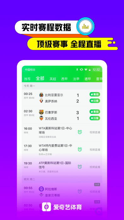 【网球】爱奇艺体育纵览澳网、温网、美网、戴维斯杯和联合会杯、拉沃尔杯、WTA、ATP等顶级网球赛事权益,来爱奇艺体育APP,你想看的网球赛事,这里全都有!
