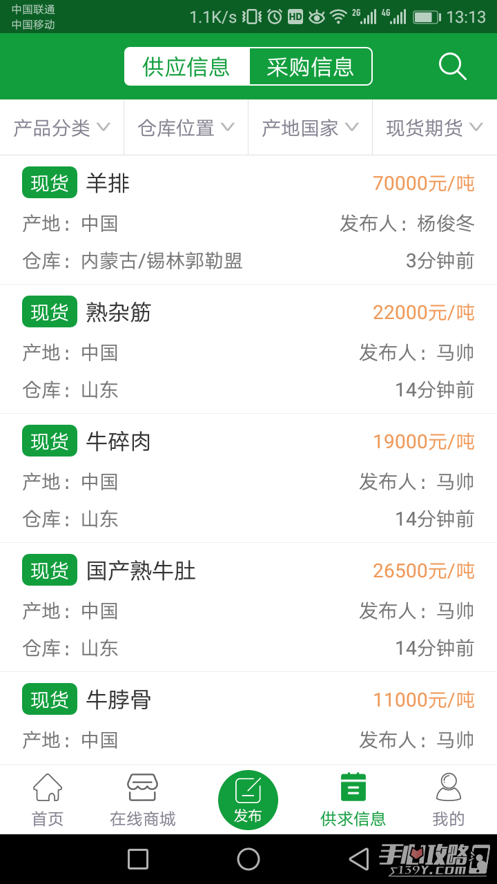 6、供求信息,可以查看他人发布的供求数据,便于快速的促进交易