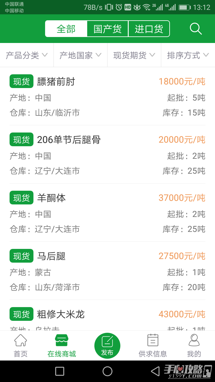 5、筛选功能,可根据产品分类、仓库位置、原产地、现货期货等进行筛选。