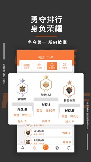 个人/战队战力数据实时更新,登顶榜首,傲视群雄!是时候展现真正的实力了,快来找到强力队友!一起共赢奖金!