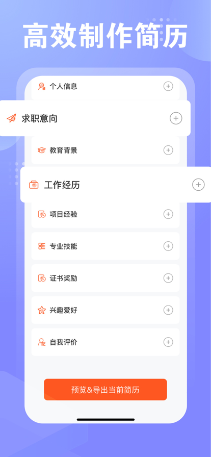 轻松导出打印:当制作完简历之后,可以轻松导出生成的个人简历,非常方便