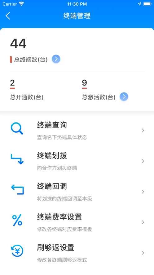 通过移动设备与业务系统的智能交互,实现发展人与商户自动关联,包括商终管理、交易管理等诸多功能。