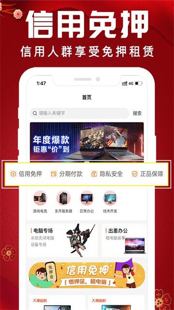 3、信用租赁,0押金:芝麻信用550分起,信用人群享受0押金租赁服务。