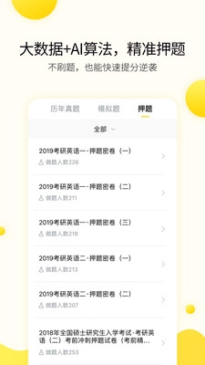 4、押题全面升级,大数据+AI算法,押题覆盖全国五十所重点高校,不刷题也能轻松拿高分。