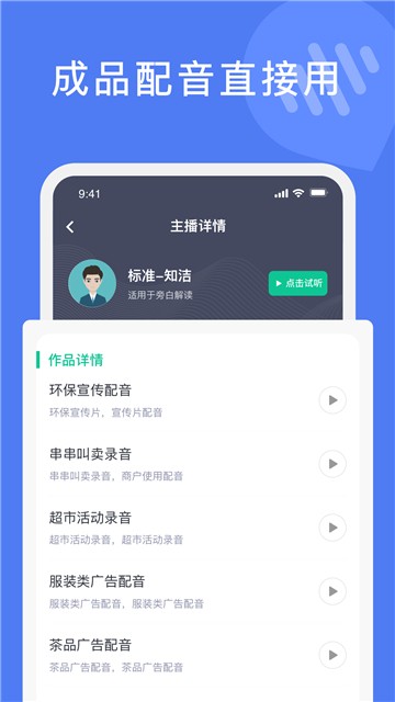 5、行业配音:公共场所温馨提示、防火防盗、卫生宣传、路线导航等。