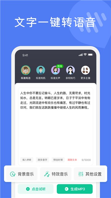 滴答文字转语音,主播声音自由任你选,随时一键套用各种成品配音的模板,或者你自己也可以轻松在这里学会配音,文字一键快速专为语音,或者反之互转,轻松导出你的mp3文件,其他多种不同的格式也可以在这进行高清音质的保存,一键操作更加轻松。