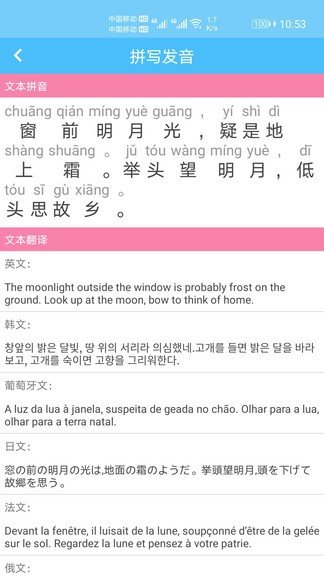 5、在拼写发音界面中,用户可查看到每一个汉字的具体拼音