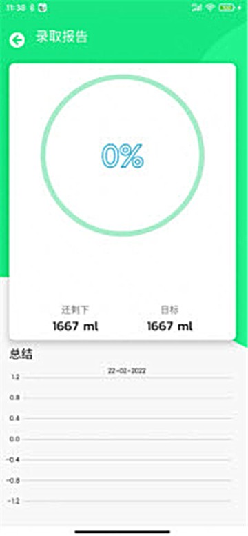 3、根据用户每天的饮水状态,为用户提供统计表,让用户可以直观的查看到自己每天的饮水状态信息,对于自己的饮水状况很好的掌握。
