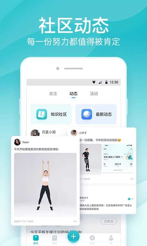 社区动态更新:过百万小伙伴见证你的蜕变,让你身边处于减肥、健身、跑步的小伙伴都聚集到一起,探索减肥的更多乐趣~
