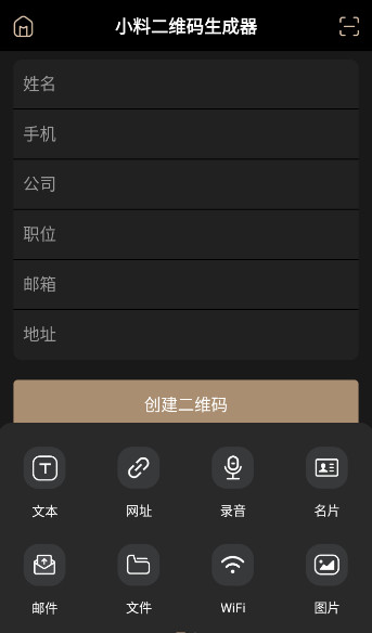 小料二维码生成器是一个制作工具,可以一键简单地生成二维码,文字、语音、视频、照片可以一键转换成二维码,随时随地共享,其他用户可以通过扫描二维码查看共享信息,还有更多的方法可以在软件中建立二维码,等您下载体验。