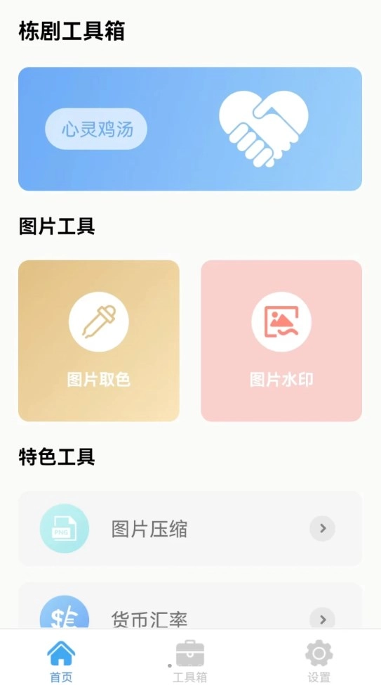 栋剧工具箱app是一款拥有多种多样实用工具的手机软件,集成了多种实用图片工具和二维码工具,通过该软件轻松处理图片和生成二维码,非常实用,包含多种图片处理工具,例如,截屏,图片缩放,裁剪,旋转和仿射变换等功能,同时还支持图片取色和图片格式转换,使得更好地进行图片的编辑和优化。
