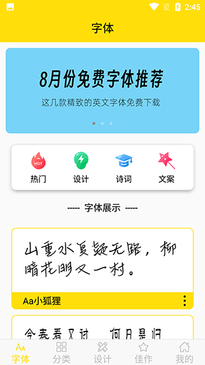 该应用还提供了一些字体设计的教程和技巧,帮助用户提升字体设计的能力。无论是专业设计师还是普通用户,都能在字体设计大全app中找到适合自己的字体,为设计作品增添独特的风格。