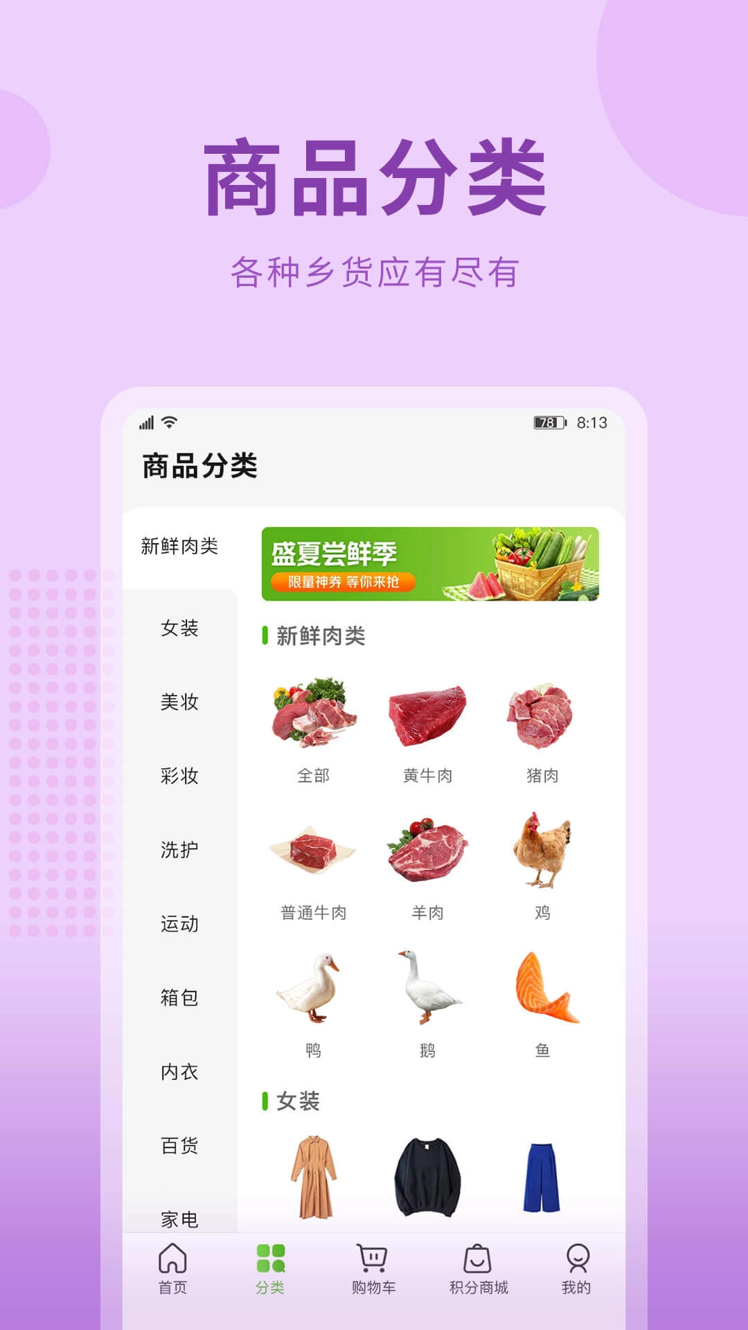 1、很多的商品,不同的类别,可以随意挑选,满足用户需求。