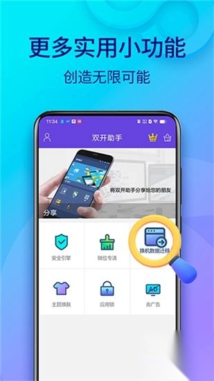 2.是很实用的软件,可以帮助用户手机里的软件随时都可以多开几个;