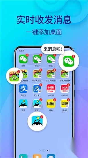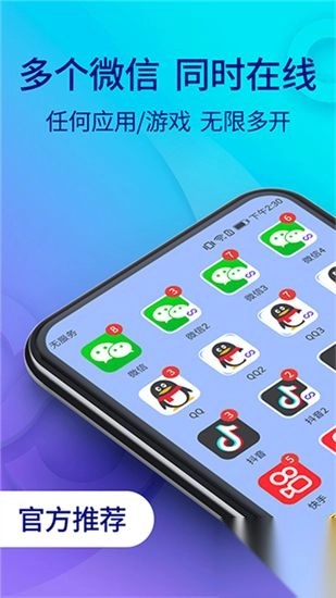 作为全球首款应用双开app,免费支持微信、qq、淘宝等所有应用双开分身,双账号同时在线更欢乐!