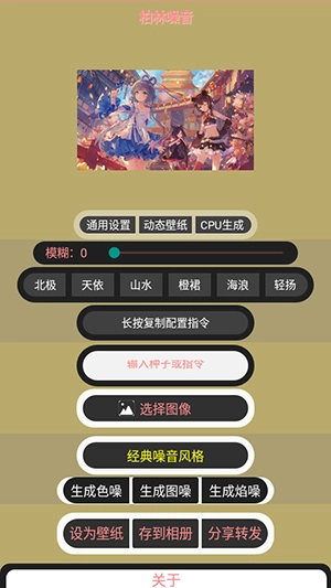 噪音壁纸app是一款非常好玩的掌上壁纸应用。噪音壁纸app精选海量壁纸供你挑选,并且支持自制壁纸,非常实用,用户界面设计十分简陋,只有各类涉足选项、滑块和文本输入框。它是一款随机壁纸生成软件,用户只要导入一张高清的突变,并且根据需求适当调整模糊、噪声风格等设置,最终会在高清图片中生成底部的色噪、图噪或生成焰噪等效果,制作出一张风格独特的艺术壁纸。软件所生成的噪声壁纸具有唯一性,每次生成的壁纸都不是相同的,让你手机的壁纸独一无二。