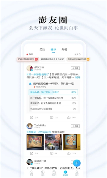 澎湃新闻软件还注重新闻的及时性。用户可以通过澎湃新闻观看最新的新闻动态,包括热点事件、突发新闻等。同时,软件还提供了个性化推荐功能,根据用户的兴趣和阅读习惯,为用户推送符合其兴趣的新闻内容。