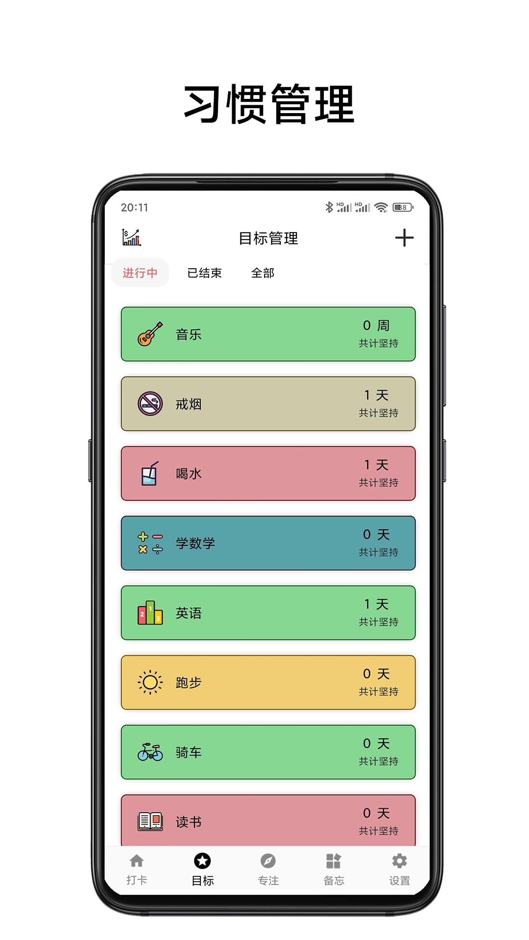 应用支持数据备份和同步功能,用户可以在不同设备上同步打卡数据,确保数据的安全性和一致性。还设有奖励机制,通过连续打卡或达成一定目标来获得奖励,激励用户坚持养成好习惯。