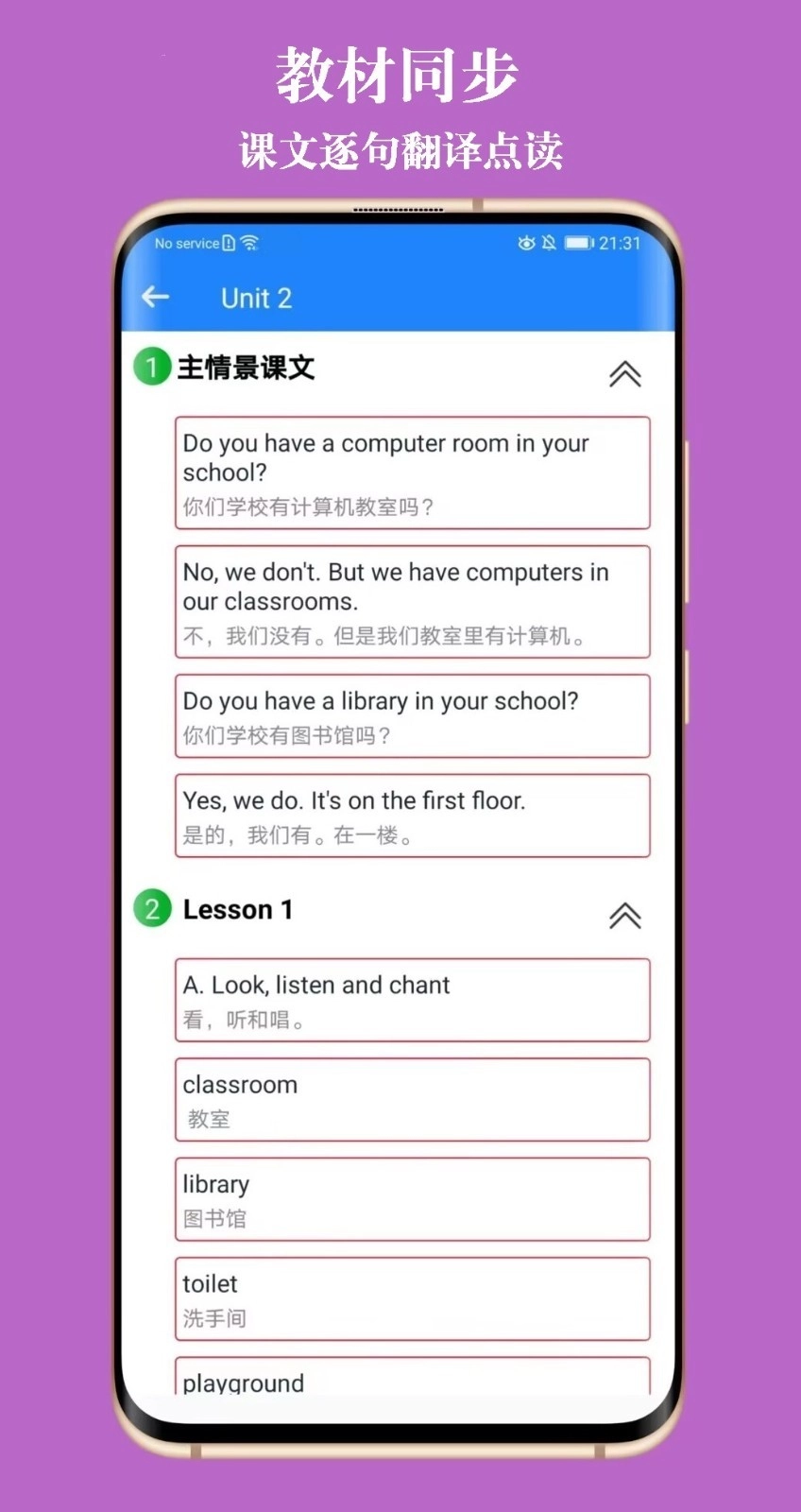 1、提供了课本点读、课文翻译、单词背记等功能。
