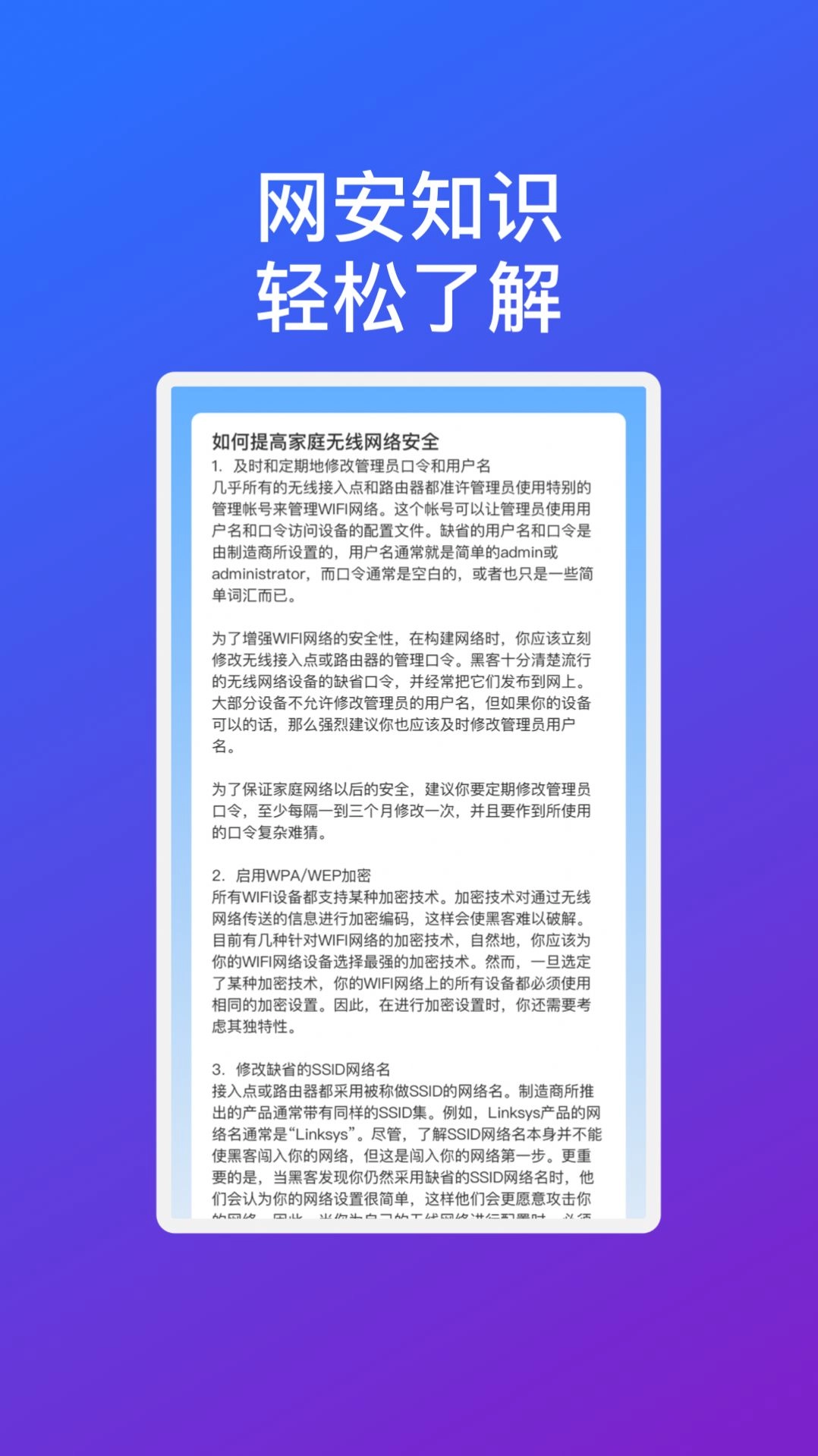 2、提供了网络安全保护功能,包括防火墙、病毒扫描、黑名单限制等,确保用户的个人信息和设备安全。