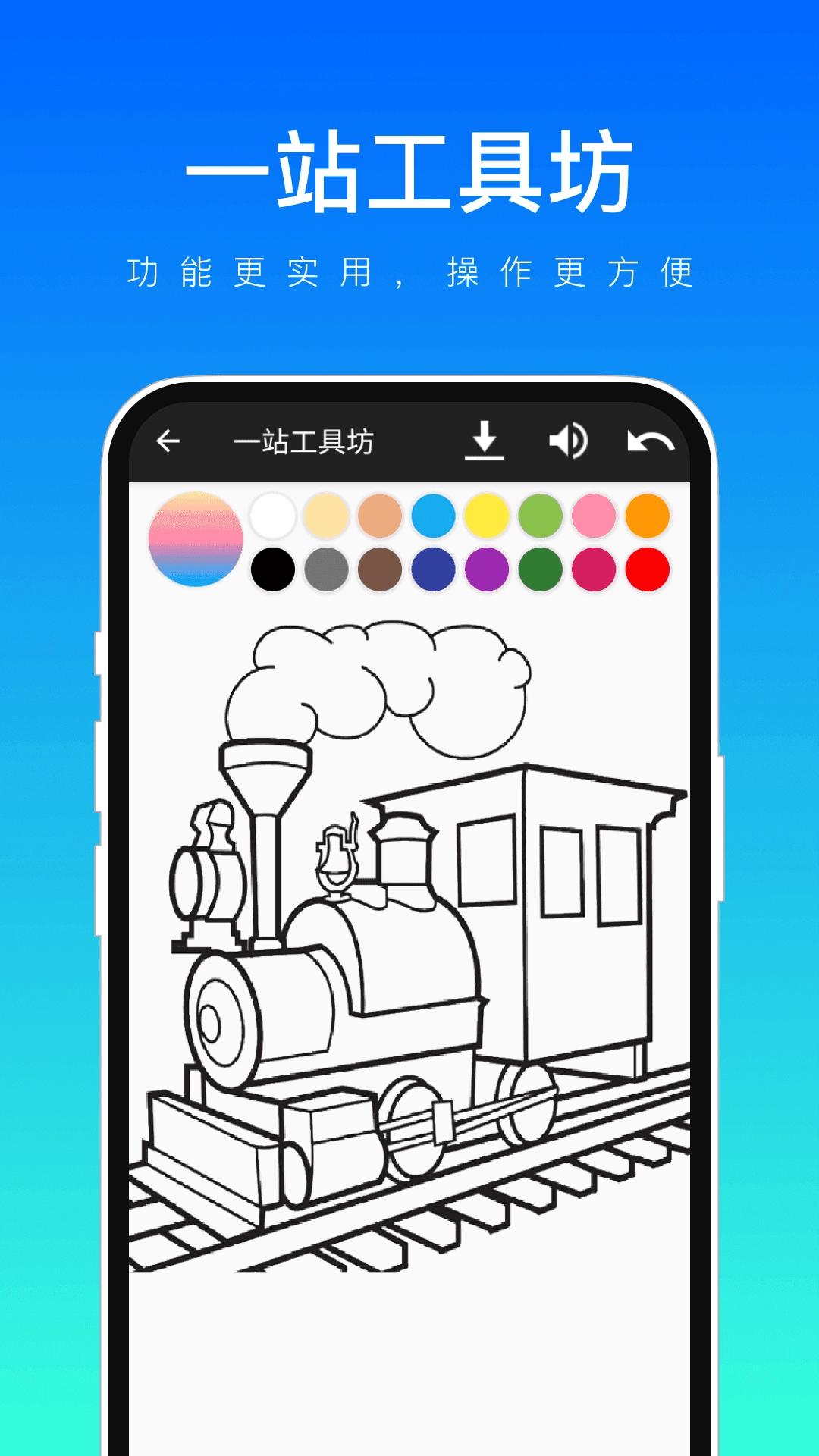 一站工具坊是一款专注于涂鸦填色的工具箱助手软件,为用户提供便捷的创作和编辑功能。该软件拥有丰富多样的绘画工具,包括画笔、颜料、橡皮擦等,用户可以根据自己的创作需求选择合适的工具进行绘画和填色。提供了多种颜色调色板,用户可以轻松选择喜欢的颜色进行绘画和填色,创造出丰富多彩的作品。