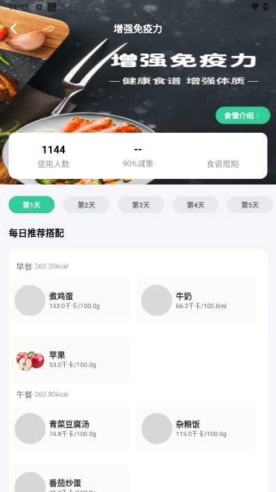 2、用户可以查看每个食物的热量、营养成分和建议摄入量,合理安排饮食,保持身体健康。