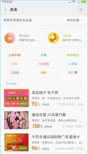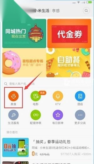 1、打开软件主界面,点击美食,即可查看附近所有的美食。