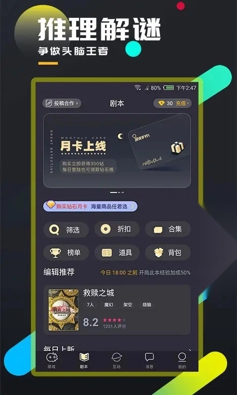 2. 每个剧本皆设有不同职业,这些职业通过网络随机分配,以应用于充满激情的调查工作当中。
