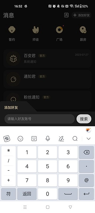2. 选中并点击“添加好友”选项,接着输入朋友的账号相关信息。