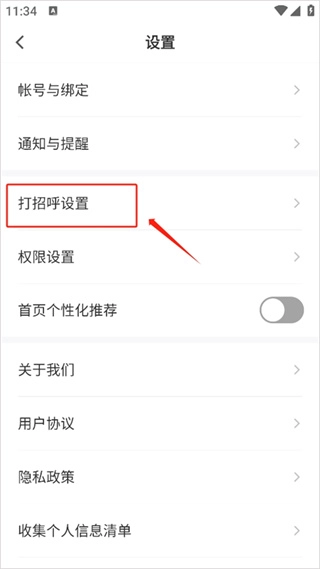 2、接下来便能够在“设置”页面挑选“打招呼设置”。