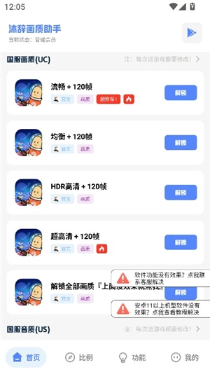 2、该作品主要支持对香肠派对国服的120帧、音质以及比例等参数进行修改。