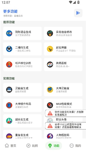 4、还有丰富的实用功能可供选择,例如生成二维码、调整灵敏度、起名、训练听声辨位等。