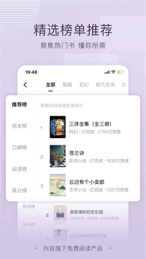 3、热门排行榜会向您呈现当下最热门的小说,助您发现众人都在阅读的小说,洞察大家的喜好。