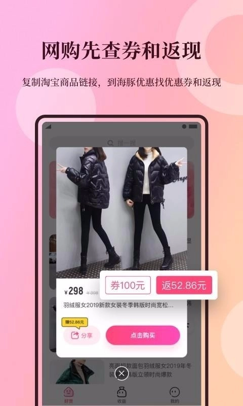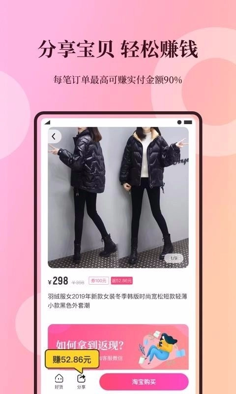 2. 具备便捷的社交分享功能,能把优质商品一键转发到微信、朋友圈等社交平台。