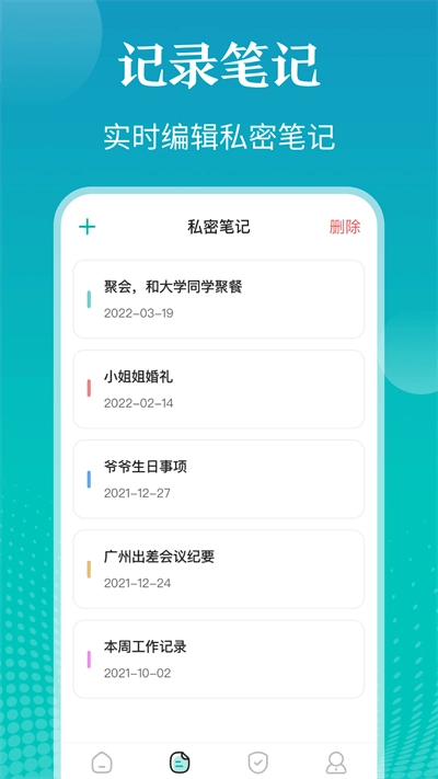 1、加密:业内认证的专业加密处理,除了自己,任何人都不能查看。